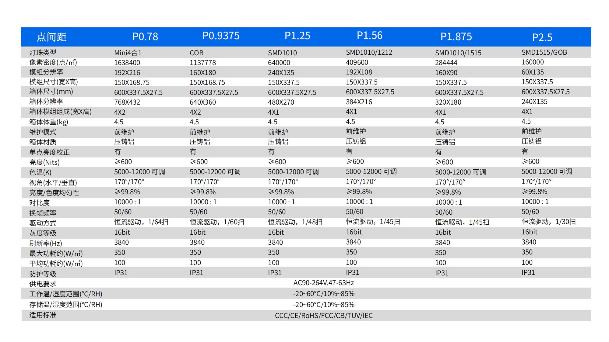 P0.78/P0.9375/P1.25/P1.56/P1.875 /P2.5